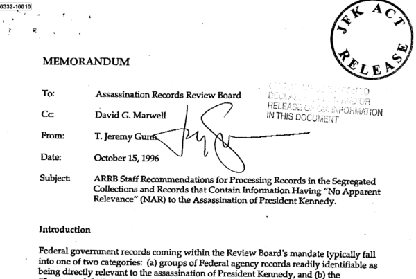 1997.06.16 — ARRB Memo Re Final Determinations Project